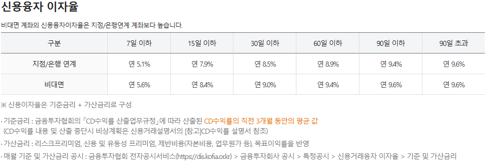 🔍신용거래융자의 보증금률, 상환기간, 이자율