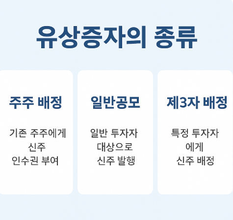 유상증자는 배정 방식에 따라 다음과 같은 세 가지 주요 형태로 나뉩니다.