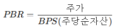 - PBR: 기업의 순자산 대비 주가의 적정성 평가