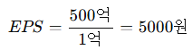 D기업의 순이익이 500억 원, 발행 주식 수가 1억 주라면,