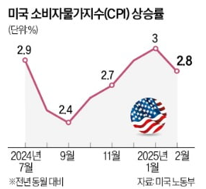 가장 최근에 발표된 3월 14일 CPI 상승률은 전년 동기 대비 2.8%로 집계되어 시장 예상치인 2.9%를 하회하고 있어 당초 예상됐던 금리인하 1회보다는 그 횟수가 많아질 것으로 기대됩니다.